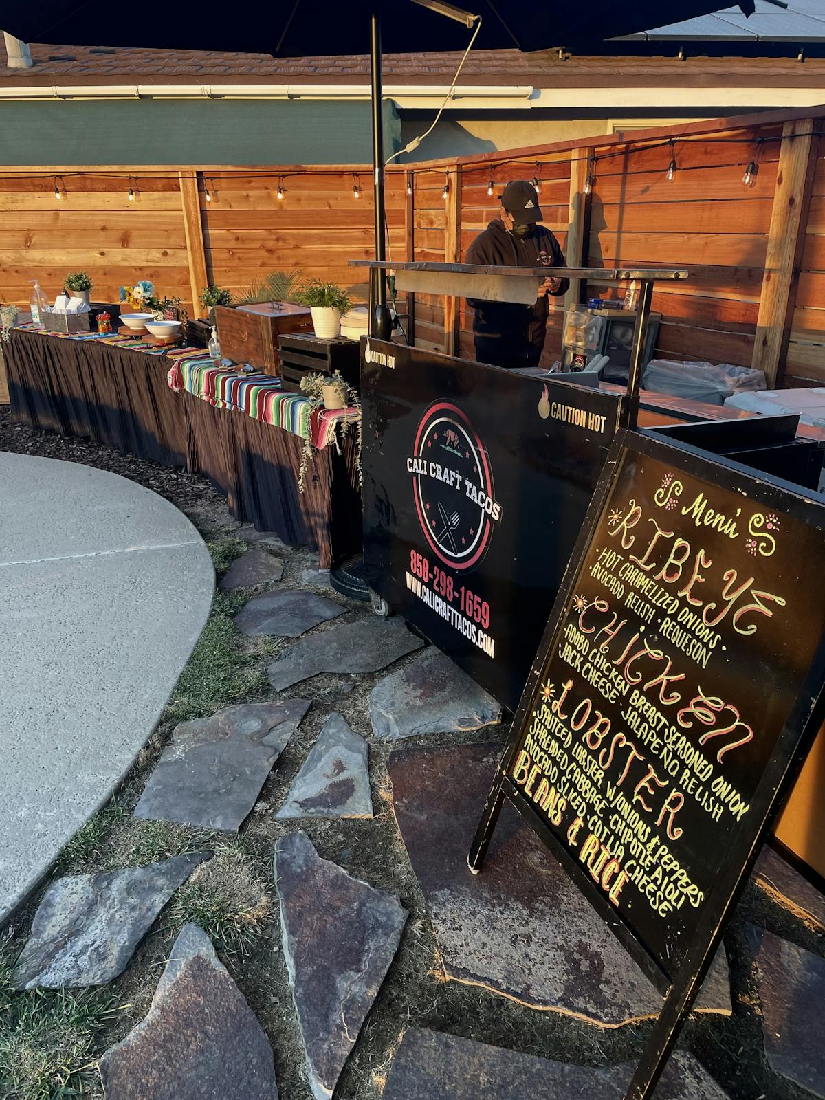 Let us bring our kitchen to your event! This service includes the set up of the food station, decorated taco bar, cooks and serving staff, and cooking & serving equipment. Set-up and serving hours will be determined by the event.